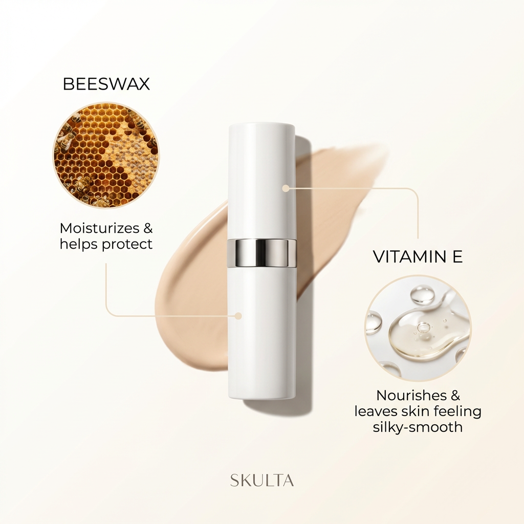 Creates a gentle protective barrier that locks in moisture and enhances the stick’s creamy glide, allowing effortless blending without settling into wrinkles.