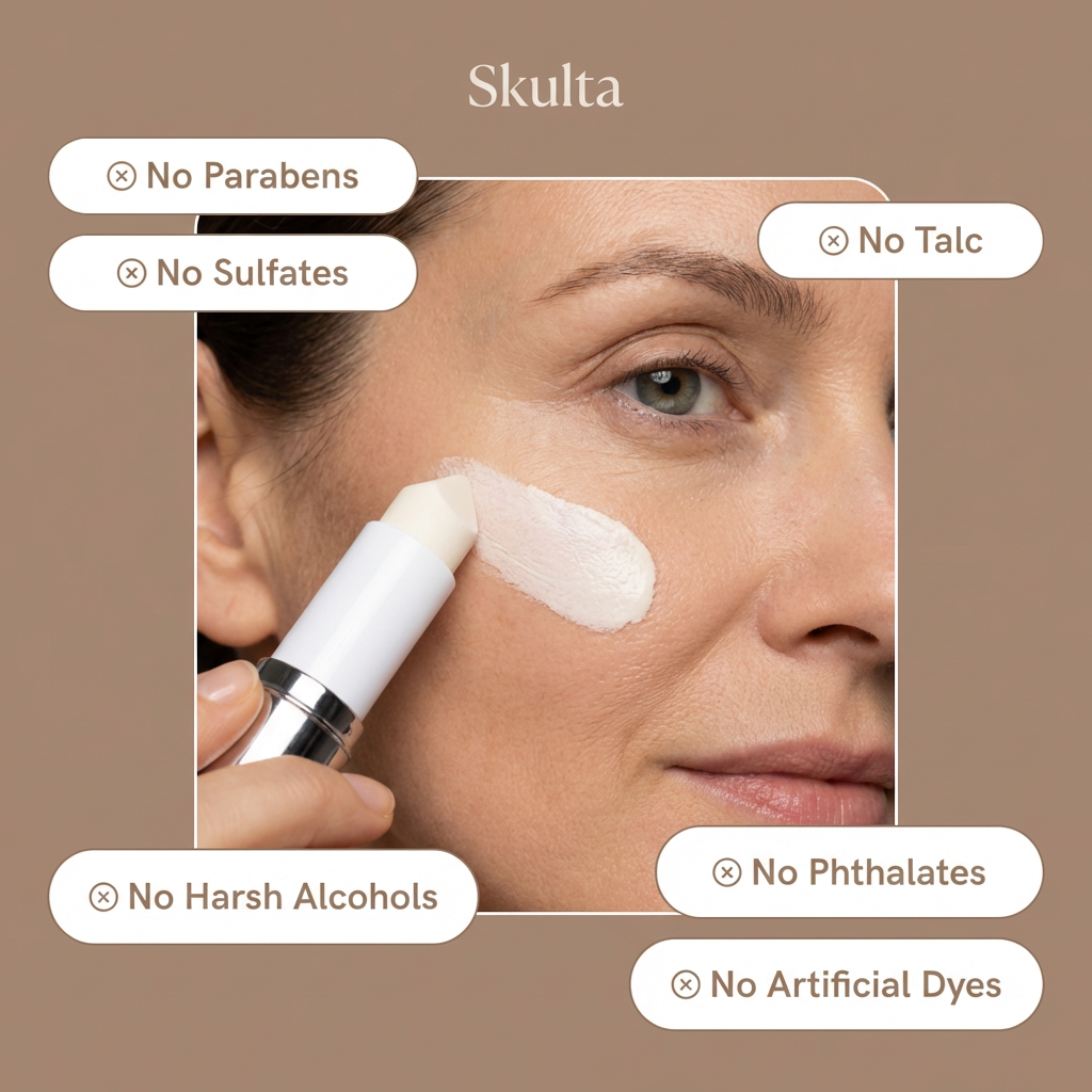 Our tinted stick is formulated with a short, gentle INCI list, designed to provide hydration, comfort, and a smooth, natural finish — especially suitable for sensitive and mature skin.